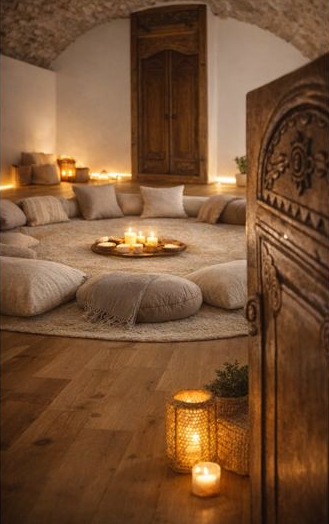 Un espace chaleureux et équipé : propice aux pratiques douces, aux ateliers et aux temps de partage.